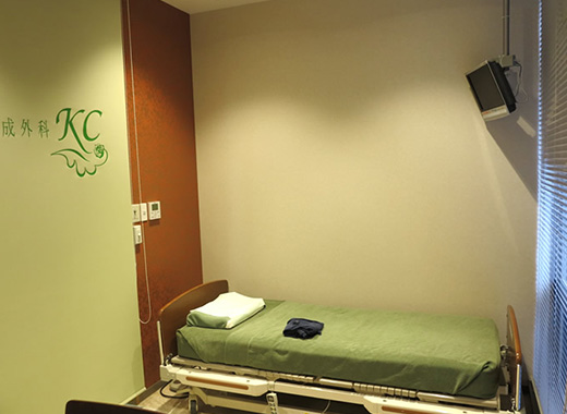 手術後は快適な病院用ベッドの上で休んでいただき、ご家族や付き添いの方も待機できる広さのお部屋です。また、室内トイレも設置しています。